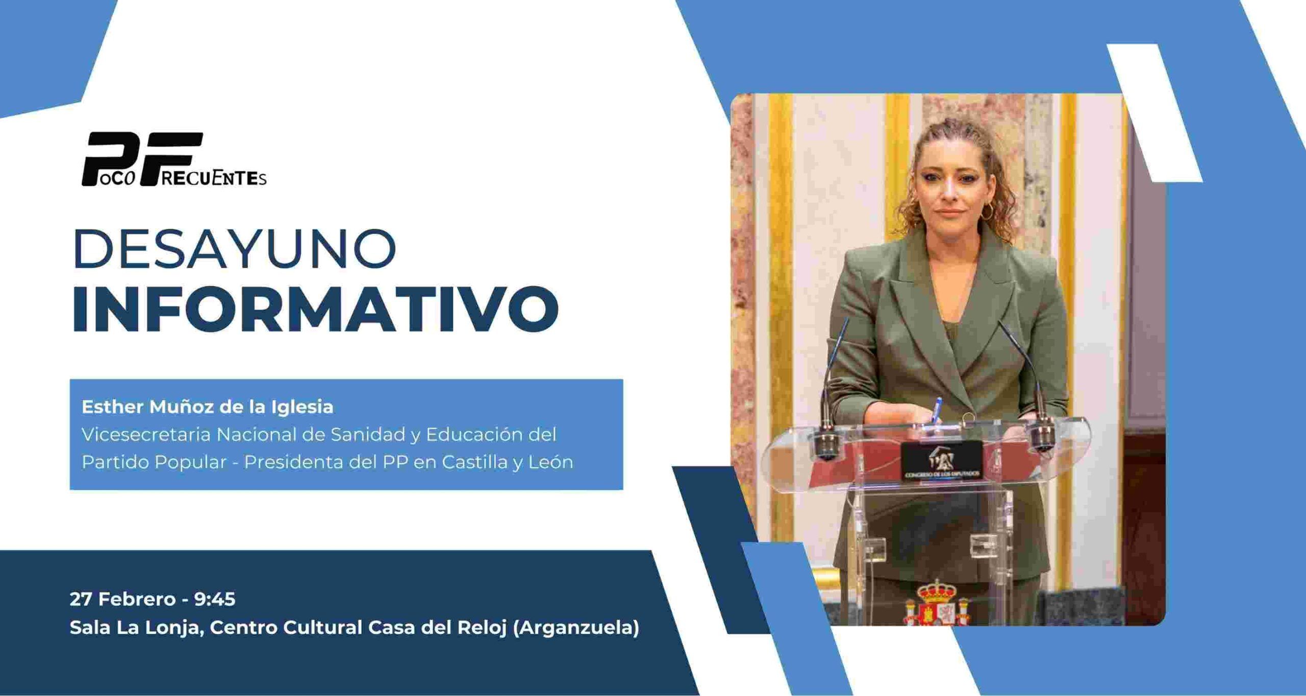 La Asociación Poco Frecuentes ha organizado un desayuno informativo con Esther Muñoz de la Iglesia, Vicesecretaria Nacional de Sanidad y Educación del Partido Popular y Presidenta del PP en Castilla y León.